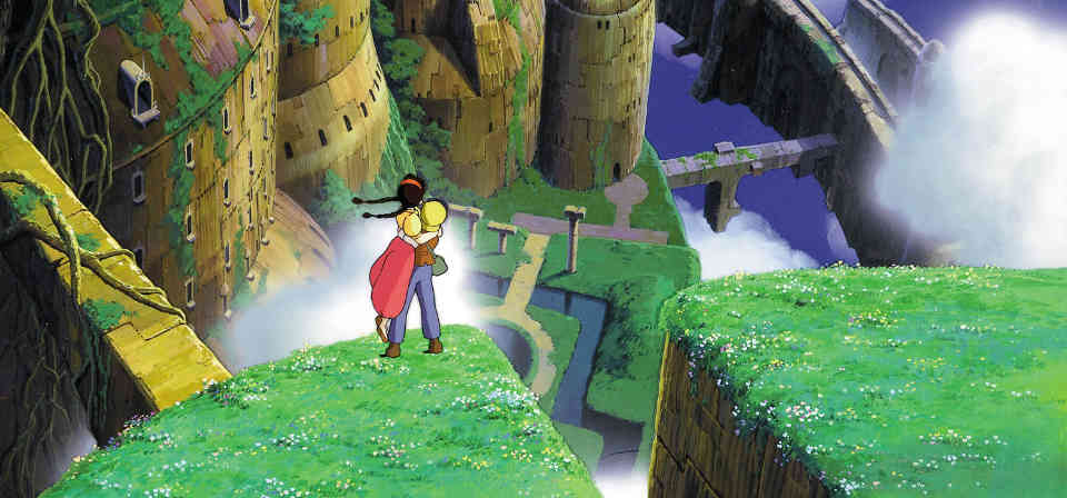 The crowning glory, though, is Laputa itself, a half-ruinous ghost city, with gardens still tended by decrepit robots, crumbling stonework, flooded shafts, and that one titanic tree that ages ago shattered the dome above with its branches, and whose roots reach into the deepest bowels of the city. If Miyazaki’s previous film, Nausicaa of the Valley of the Wind, ideally showcases the epic scope of the director’s imagination on an evolutionary scale, Laputa does the same on a civilizational scale. Laputa is one of the great imaginary places of the movies.